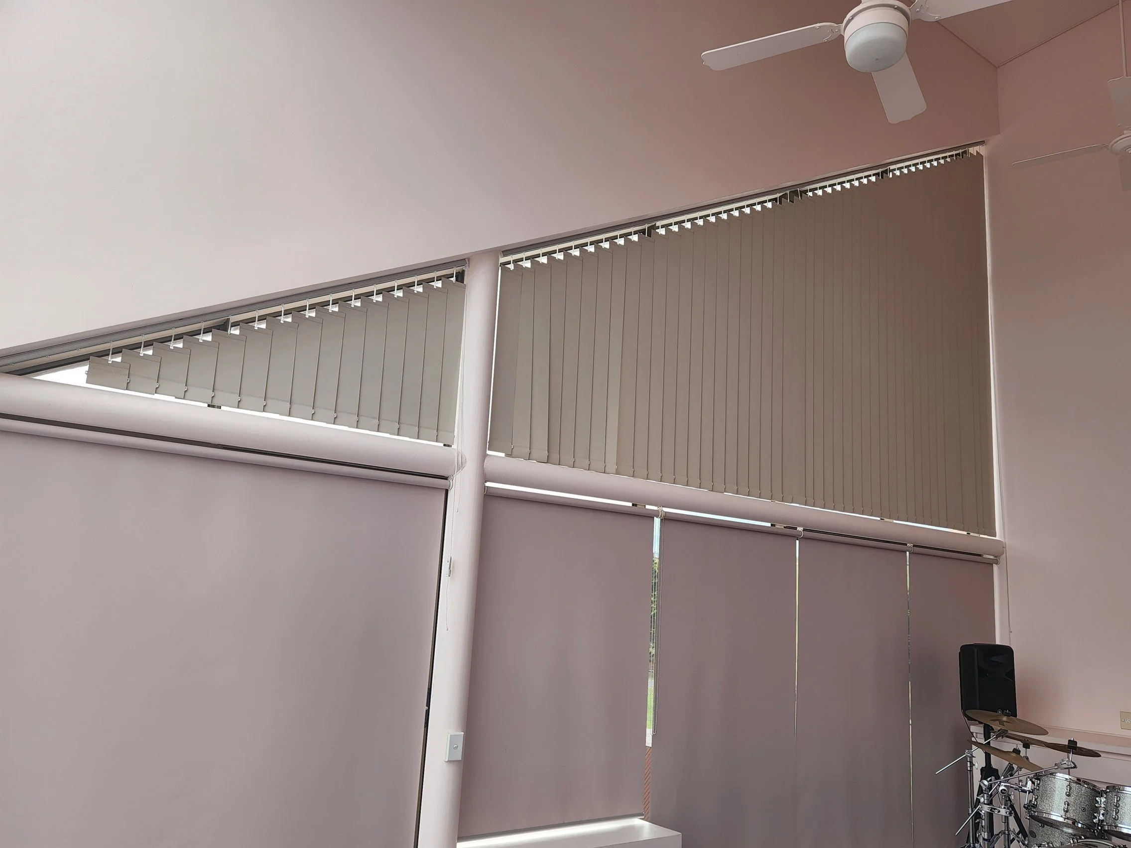 Designed to perfectly fit sloping or angled windows, these blinds offer both functionality and aesthetic appeal. The vertical slats smoothly follow the contours of the window, providing precise light control and privacy. Whether it's a skylight, an attic window, or any other unique architectural feature, sloping vertical blinds are tailored to fit your specific needs.